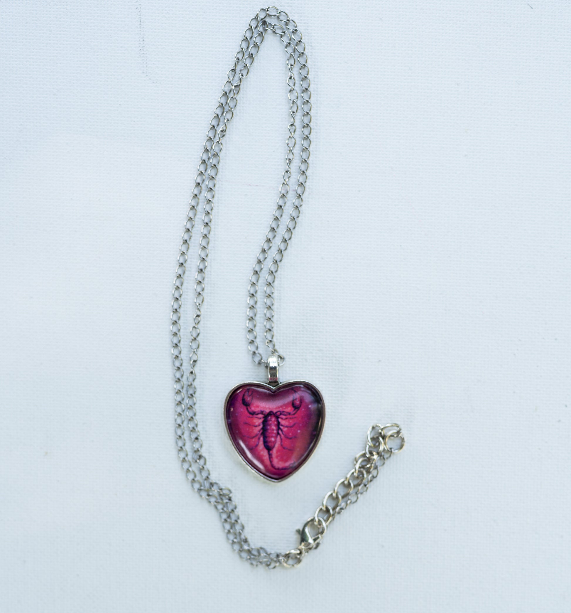 Original Painting by Pax Paints "The Cosmic Scorpion" in a custom heart pendant. Arrives with a stainless steel chain with claw clasp.